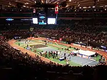 La piste en salle est une surface aux virages relevés, de longueur officielle de 200 mètres. La ligne droite au milieu ne permet de courir que 60 mètres. En conséquence, tous les formats de course ne s'y retrouvent pas. Ainsi, il n’y a pas de 100 mètres mais des 60 mètres, des 400 mètres, des 800 mètres, des 1 500 mètres et des 3 000 mètres qui sont disputés lors des Championnats du monde d'athlétisme en salle. Dans les pays anglo-saxons, il y a aussi des courses d'un mile et de 2 miles.