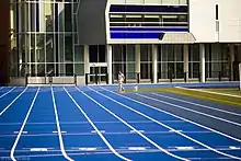Une piste d'athlétisme standard est une surface plane oblongue composée de deux lignes droites et deux demi-cercles, dont le périmètre intérieur est de 400 m en plein air. La largeur et le nombre de couloirs sont variables (habituellement de six à neuf couloirs de 1,22 mètre de large[1], le couloir 8 faisant 453,03 m de long). La piste d'athlétisme est souvent associée à d'autres aires, destinées à la pratique d'autres disciplines de l'athlétisme (sauts, lancers) ou à d'autres sports (football, rugby).