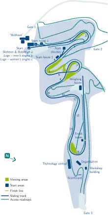 Construite en 1977, la maison de départ a été modifié entre-temps pour la luge féminine, ainsi que celle des hommes en 2006. Ceci a été fait avec l'autorisation de la FIBT et de la Fédération internationale de luge de course. Par la même occasion, la zone de stockage des engins est aujourd'hui complètement recouverte, de nouveaux vestiaires ont fait leurs apparitions ceci dans le but que les équipes puissent préparer au mieux la compétition. La piste a accueilli les premiers championnats du monde de bobsleigh féminin en 2000.
