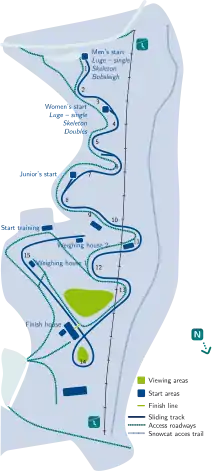 Entre l'aire de départ et l'aire d'arrivée, la différence d'altitude est de 96 mètres pour le bob et skeleton.