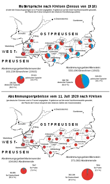Dans le district de vote d'Allenstein, plus de 97 % des électeurs ont voté pour rester au sein de la Prusse orientale, et donc de l'Empire allemand, et contre une cession à la deuxième République polonaise ; dans le district de vote de Marienwerder, ce sont plus de 92 % qui ont fait ce choix[2]. Ces résultats sont remarquables dans la mesure où une partie importante de la population des zones de vote était de langue maternelle polonaise. Les résultats du plébiscite ont cependant été fortement influencés par la guerre soviéto-polonaise alors en cours, alors que l'armée polonaise était sur la défensive et que l'Armée rouge semblait avancer inexorablement vers Varsovie. De nombreux Polonais de la région ont donc opté pour l'incorporation à l'Allemagne plutôt que de risquer une éventuelle occupation soviétique.