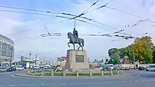 La statue d'Alexandre Nevski au centre de la place.