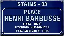 Cette place a été nommée en hommage à Henri Barbusse (1873-1935), écrivain français.
