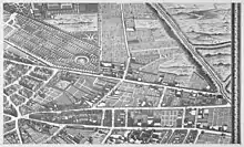 La porte d'accès à l'église du couvent des Prémontrés du Saint-Sacrement s'ouvrait sur le carrefour à l'angle des rues de Sèvres et du Cherche-Midi.