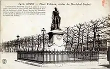 - Il y eut une statue du Maréchal Suchet, par Tony Desjardins sur la place[13].