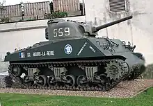 - Réplique d'un char M4 Sherman qui a participé aux combats de la Libération de Paris puis ira combattre en Champagne, en Alsace et en Allemagne jusqu'à Phalsbourg[6],[7].