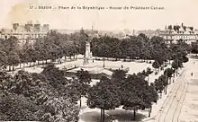 En , le conseil municipal de Dijon décide de construire sur la place de la République un monument au président Sadi Carnot, assassiné à Lyon en juin 1894[2]. Le président avait des liens avec la Côte-d'Or dont il avait été député et avec Dijon où sa fille Claire Carnot réside avec son mari Paul Cunisset-Carnot, magistrat et homme politique dijonnais influent. Ce monument à Sadi Carnot, érigé au centre de la place en 1898, est inauguré le par le président Émile Loubet[2].