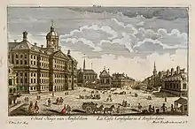 La place du Dam vue depuis le Madame Tussauds, avec le monument national au centre et le magasin De Bijenkorf à gauche. | ||