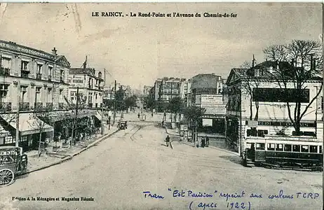 - Le terminus du tramway du Raincy à Montfermeil, qui fut fermé en 1938.