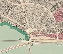 La place Charles-de-Gaulle forme l'entrée de ville côté sud et menait vers la porte de Villemomble[3]. Cette porte de Villemomble, semblable à la porte de Chelles à l'est de la ville, est attestée en 1781. Elle subit des travaux en 1790, puis fut détruite entre 1860 et 1875[4].