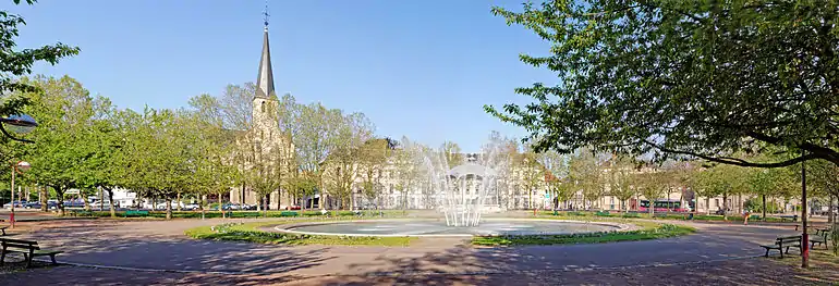 Jets d'eau au centre de la place du Président-Wilson | |