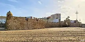 - (es) Cet article est partiellement ou en totalité issu de l’article de Wikipédia en espagnol intitulé « Playa de La Caleta (Cádiz) » (voir la liste des auteurs).