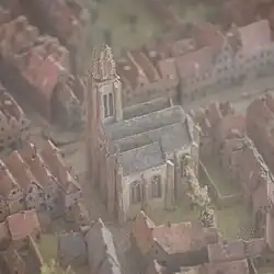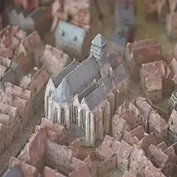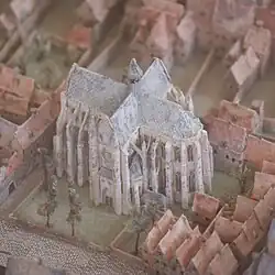 La collégiale Saint-Pierre n'est plus en fonction à cette époque, elle fut désacralisée et ses vestiges servent d'infirmerie à l'abbaye Saint-Vaast |