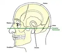 Le plan relie trois points : d'une part les marges supérieures des deux conduits auditifs externes (dénommées en anthropologie Po ou porion) et le point le plus bas du rebord inférieur de l'orbite (dénommé Or ou orbital) gauche[1].