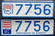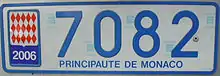 Monaco possède un système d'immatriculation depuis 1928, mais les véhicules monégasques ont porté des plaques dès 1901. La principauté utilisait alors le système français. Le format monégasque actuel date de 1978. Les plaques de la série courante sont blanches à caractères bleus. Ces caractères comprennent soit quatre chiffres, soit une lettre et trois chiffres. Des séries différentes existent pour de nombreuses catégories de véhicules, notamment les voitures de l'État, du prince, du corps diplomatique, mais aussi les voitures électriques ou en location.