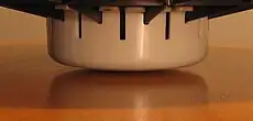 Sur la face inférieure et en position centrale est fixée une demi-sphère. Elle est d'un diamètre réduit, généralement de 8 cm.