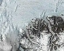 Une étude datant de 1986 a montré que 3,6 km3 de cette plaque avait disparu entre 1959 et 1974[2]. La platefrome s'est détachée de la côte le , formant un iceberg tabulaire, qui a souvent été appelé île de glace, de 37 mètres d'épaisseur sur 14 kilomètres de long par 5 kilomètres de large, son volume est de 2,59 km3. La glace la plus ancienne de cet iceberg est âgée de plus de 3 000 ans. L'iceberg était situé en par 83° 01,5′ N, 77° 33,5′ O, à peu près à 800 kilomètres au sud du pôle Nord.