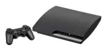 La fonte de caractères, ou police, utilisée pour le logotype final de la console est celle des films Spider-Man, dont la licence appartient à Sony. Teiyu Goto explique que le précédent logo de la PlayStation ne se mariait plus avec les formes arrondies du nouveau modèle. En outre, créer une police spécifique comportait des risques au niveau qualitatif ainsi qu'un surcoût. Teiyu Goto précise enfin qu'utiliser la même fonte était aussi le souhait du président de Sony Computer Entertainment, Ken Kutaragi[47]. À partir de , des rumeurs ont circulé au sujet d'une nouvelle version de la console, au design particulièrement affiné[48]. Sony n'a pas fait de commentaires au sujet de cette « PS3 Slim » à l'E3 2009 mais l'a confirmé lors de la Gamescom le 18 août 2009 à Cologne[49]. La PS3 Slim, sortie à l'automne 2009, arbore un design bien plus sobre que la PS3 originale, avec une finition mate et un nouveau logo PS3 plus discret. La manette ne change pas, il s'agit toujours de la Dual Shock 3.