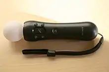 Présenté lors de l'E3 2009 le Motion Controller est une manette permettant la reconnaissance de mouvement, proche dans la forme de l'utilisation d'une Wiimote dont il s'inspire. Le , à la Game Developers Conference de San Francisco, est finalement révélé le nom final du Motion Controller : PlayStation Move[57]. Il est distribué depuis le en Europe, le en Amérique du Nord et à partir du au Japon.