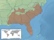 Cette espèce est endémique des États-Unis. Elle se rencontre dans l'est de la Louisiane, dans le Mississippi, dans le Tennessee, dans l'Alabama, en Géorgie, en Floride, en Caroline du Nord, en Caroline du Sud, en Virginie et dans le sud du Maryland[1].