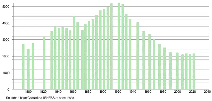 - Population municipale légale en vigueur au 1er janvier 2024, millésimée 2021, définie dans les limites territoriales en vigueur au 1er janvier 2023, date de référence statistique : 1er janvier 2021.