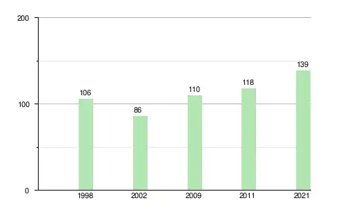 En 2021, le village de Pniewy comptait 139 habitants, en augmentation de 31,13 % par rapport à 1998[6]. En 2021, 54,7 % des habitants du village de Pniewy sont en âge de travailler (entre 18 et 64 ans pour les hommes et 18 et 59 ans pour les femmes). 26,6 % des habitants ont moins de 18 ans et 18,7 % ont l'âge légal de la retraite. Les personnes en âge de travailler représentent 59,5 % de la population de la voïvodie de Couïavie-Poméranie et 59,5 % de la population de Pologne. Ainsi, le taux de dépendance démographique du village de Pniewy est supérieur à celui de la voïvodie de Couïavie-Poméranie et supérieur à celui de la Pologne[7].