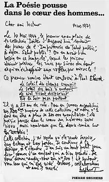 Note, en 1953, dans sa collection Poésie 53, Pierre Seghers avait déjà publié :