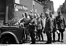 - Le général Alphonse Juin avec la 15e Division d'Infanterie Motorisée au Faubourg des Postes à l'entrée de la ville.
