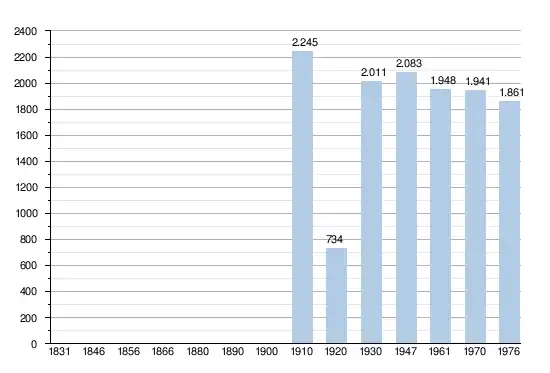 - Sources : INS, Rem. : 1831 jusqu'en 1970 = recensements, 1976 = nombre d'habitants au 31 décembre[2].
