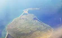 Vue aérienne de Grande Miquelon depuis le sud-est avec la pointe au Cheval en bas à gauche.
