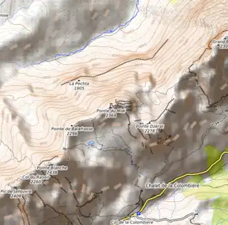 | Voie la plus facile | depuis le col de la Colombière par le lac de Peyre | ||