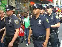 Certaines ne peuvent ne comprendre qu'un seul fonctionnaire de police — souvent alors appelé « Town Marshal »[5] - jusqu'à plusieurs milliers pour les grandes métropoles. Le NYPD, la police de la ville de New York, compte ainsi plus de 50 000 agents[5]. Parmi les autres services de police importants, on peut citer : CPD pour Chicago, LAPD pour Los Angeles, SFPD pour San Francisco, BPD pour Boston, DPD pour Détroit, APD pour Atlanta, APD pour Austin, BPD pour Baltimore, SDPD pour San Diego, DPD pour Denver, HPD pour Honolulu.