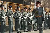 - Police afghane en uniforme : activité quotidienne, maintien de l'ordre ;