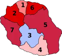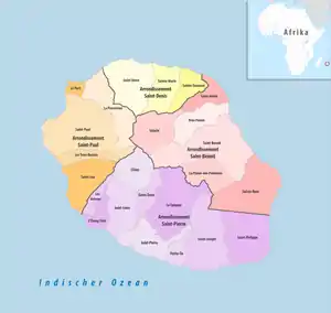 La préfecture de La Réunion est localisée à Saint-Denis. Le département possède en outre trois sous-préfectures à Saint-Benoît, Saint-Paul et Saint-Pierre.