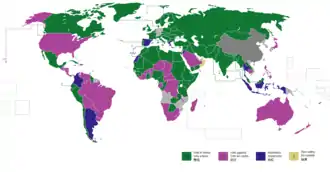 - Asie : Afghanistan, Bangladesh, Cambodge, Chine, Corée du Nord, Irak, Iran, Kazakhstan, Kirghizistan, Laos, Liban, Népal, Pakistan, Palestine, Qatar, Syrie, Tadjikistan, Turkménistan, Ouzbékistan, Yémen