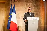 Le , Bidault prononce devant l’Assemblée nationale un discours entièrement consacré au thème européen, qui constitue la première expression officielle du gouvernement français en faveur de la construction d’une Europe unie où s’intégrerait l’Allemagne[27]. Sur le plan inter-européen, le congrès de La Haye est le véritable coup d'envoi en de la construction européenne. Trois mois plus tard, Bidault reprend à son compte l'idée de création d'une assemblée européenne. Pour la première fois, un gouvernement présente officiellement un projet tendant à la construction de l’Europe[alpha 4],[27]. Sur cette lancée, le Conseil de l'Europe voit le jour le .