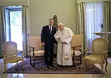 - : Invocation pour la paix dans les jardins du Vatican réunissant autour du pape François, le président d'Israël, Shimon Peres et le président de Palestine, Mahmoud Abbas[19].