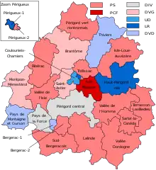 | Périgord central | Thierry Nardou | PS | Claudine Faure | DVC | ||