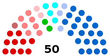 Le niveau cantonal voit la gauche dominer le conseil général. Bien qu'ayant progressé depuis 1994 avec cinq cantons supplémentaires, la droite a vu ses gains effacés en 2008 pour redescendre à 18 sièges.