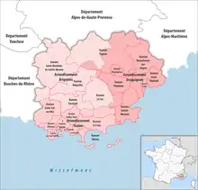 La préfecture du Var est localisée à Toulon. Le département possède en outre trois sous-préfectures à Brignoles et Draguignan. L'arrondissement de Grasse a été transféré dans le département des Alpes-Maritimes en 1860.