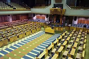 - l'assemblée nationale (400 sièges ; les membres sont élus par un suffrage populaire pour cinq ans). La moitié de ses membres sont choisis sur les listes nationales des partis, l'autre moitié sur les listes des partis des provinces.