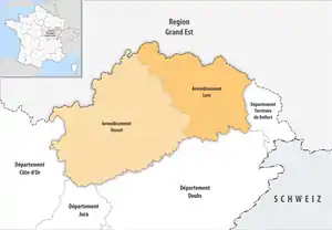 Le département français de la Haute-Saône est un département créé le en application de la loi du , à partir de l'ancienne province de Franche-Comté. Les 539 actuelles communes, dont presque toutes sont regroupées en intercommunalités, sont organisées en 17 cantons permettant d'élire les conseillers départementaux. La représentation dans les instances régionales est quant à elle assurée par 19 conseillers régionaux. Le département est également découpé en 2 circonscriptions législatives, et est représenté au niveau national par deux députés et deux sénateurs.