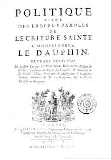 La Politique tirée des propres paroles de l’Ecriture Sainte, plus connue sous le nom de Politique tirée de l'Écriture sainte, est une œuvre de théorie politique de Jacques-Bénigne Bossuet dans laquelle il s'efforce de démontrer les liens entre politique et religion et de s'inspirer des Écritures saintes dans le but d'encourager un espace public qui soit pleinement conforme à la loi de Dieu et à la charité évangélique, dans le contexte historique de la monarchie absolue de droit divin.