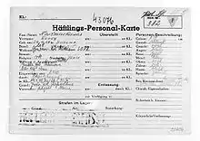 Dossier de prisonnier avec note sur les sanctions au camp de concentration