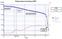 - Variation mettant en évidence la chute brutale du module de ce polymère semi-cristallin à l'approche de la température de fusion.