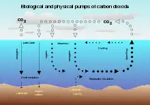 La pompe à solubilité a un équivalent biologique appelé la pompe biologique. L'article de Raven & Falkowski (1999) explique les deux processus[1].