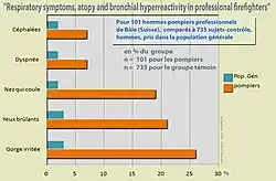 - D. Miedinger, P. N. Chhajed, D. Stolz, C. Gysin, A-B. Wanzenried, C. Schindler, C. Surber, H. C. Bucher, M. Tamm and J. D. Leuppi ; Respiratory symptoms, atopy and bronchial hyperreactivity in professional firefighters ; European respiratory journal (ERS, de l'European Respiratory Society) ; (résumé) ; online 2007/05/30, doi: 10.1183/09031936.00015307 ; ERJ 2007/09/01 vol. 30 no 3 538-544