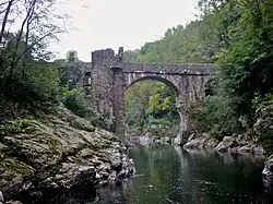 En France, parmi les ponts médiévaux les plus remarquables peuvent être mentionnés le pont Saint-Bénézet[50] à Avignon sur le Rhône (1177-1187)[50], l'ancien pont de Carcassonne[51] sur l'Aude (1180)[51], le Petit-Pont[52] à Paris sur la Seine (1186)[52], le pont Valentré[53] à Cahors sur le Lot (1231), le pont Saint-Martial[54] à Limoges sur la Vienne (1215)[54],[38]. Le pont médiéval de Vieille-Brioude, datant du XVe siècle, avait une ouverture de 54,572 m. Le pont s'est effondré en 1822.