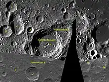 Les cratères dit satellites sont de petits cratères situés à proximité du cratère principal, ils sont nommés du même nom mais accompagnés d'une lettre majuscule complémentaire (même si la formation de ces cratères est indépendante de la formation du cratère principal). Par convention ces caractéristiques sont indiquées sur les cartes lunaires en plaçant la lettre sur le point le plus proche du cratère principal.
