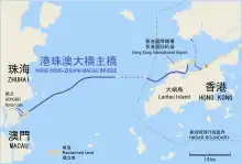 Le pont Hong Kong-Zhuhai-Macao (chinois simplifié : 港珠澳大桥 ; chinois traditionnel : 港珠澳大橋 ; pinyin : [1], (en) Hong Kong – Zhuhai – Macao Bridge (HZMB)[2]) est une série de ponts et de tunnels qui relient Zhuhai (Guangdong), Hong Kong et Macao en traversant le delta de la Rivière des Perles dans le sud de la Chine.